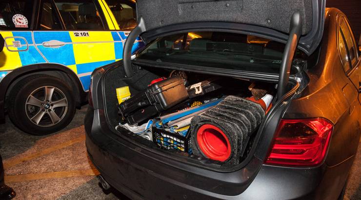 覆面パトカーのもう一つの覆面、このアンダーカバー BMW のトランクはオンコール警官が職務命令を受けたときに必要なもので一杯です。 とはいえ、トランクの中には、その都度、必要なものが入っています。 パトカーのトランクを見る機会はそう多くありませんし、以前にも写真を掲載しましたが、このような状況下での現実の姿に近いと思います。