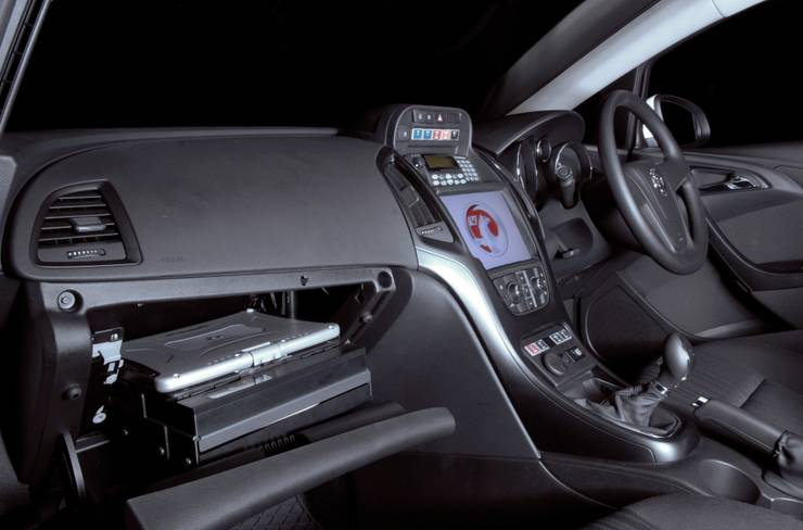 欧州では、センターコンソールを元の場所に戻してすっきりさせた。 確かに、クルーザーには、以前よりも多くのテクノロジーが必要ですが、ここ数年、スリム化が進み、パトカーは雑然としたものではなく、より庶民的な外観になり始めています。 このコンピュータはグローブボックスにぴったりと収まり、前席には警官の昼食や身の回りのものを入れるスペースが確保されました。 以前は、グローブボックスは書類やオーナーズマニュアルで埋まっているとしか思えませんでしたが、今は再びクルーザーのテクノロジーを入れる場所として機能しているようです。