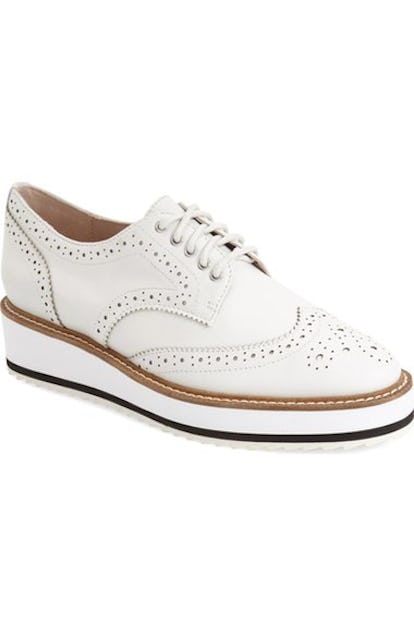 このオックスフォードシューズのプラットフォームヒールがモダンなひねりを与えています。