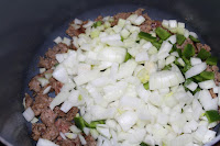 Peel away and discard outside leaves of cabbage, core and chop. Powinieneś mieć około 10 filiżanek, co stanowiło około połowy średniej główki kapusty. Zrumień kiełbasę w głębokim garnku lub holenderskim piekarniku; NIE odsączaj. Używam tu tylko pół funta kiełbasy, ponieważ tyle zostało mi w lodówce, ale polecam cały funt. Użyj albo włoskiej kiełbasy, usuniętej z osłonek, albo dobrze przyprawionej kiełbasy śniadaniowej, takiej jak Jimmy Dean lub Tennessee Pride. Nie używaj zwykłej surowej kiełbasy, chyba że podrasujesz przyprawy. Dodaj cebulę, paprykę i seler; gotuj do miękkości, mieszając od czasu do czasu.